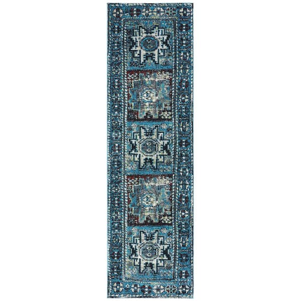 Vintage Hamadan Light Blue/Black 2 ft. x 6 ft. Medallion Border Runner Rug