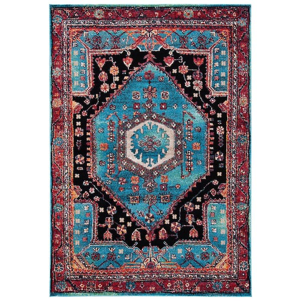 Vintage Hamadan Turquoise/Black Doormat 3 ft. x 5 ft. Border Floral Area Rug