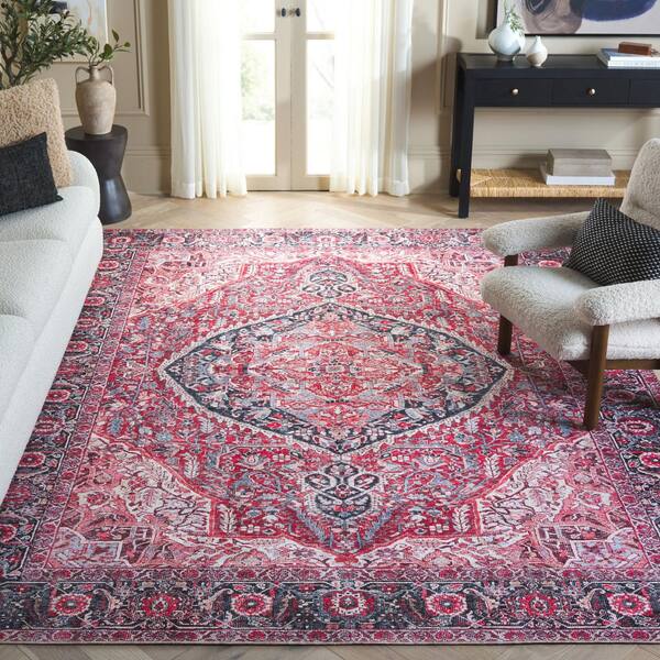 Vintage Serapi Pink/Blue 9 ft. x 12 ft. Machine Washable Abstract Ornate Medallion Area Rug