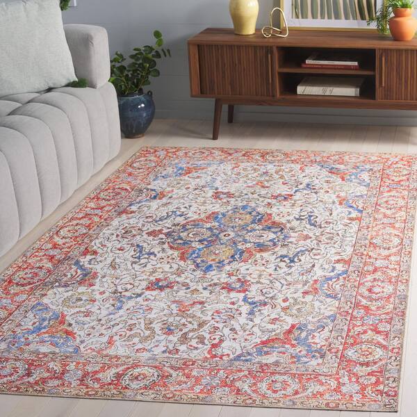 Vintage Serapi Red Orange/Blue 6 ft. x 9 ft. Machine Washable Border Abstract Area Rug