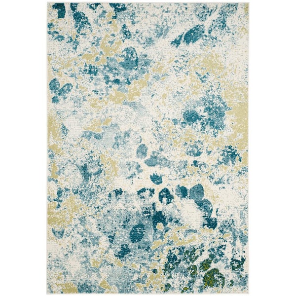 Watercolor Ivory/Light Blue 7 ft. x 9 ft. Floral Area Rug