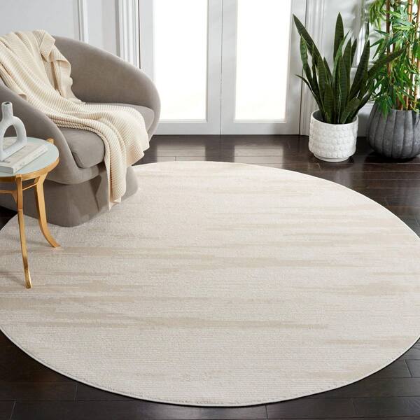 Whisper 7 ft. x 7 ft. Ivory/Beige Marble Monochrome Round Area Rug