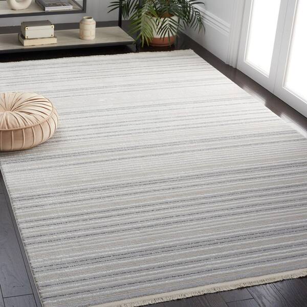 Whisper 8 ft. x 10 ft. Light Gray/Ivory Striped Area Rug