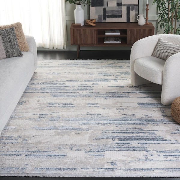 Whisper 9 ft. x 12 ft. Gray/Blue Ivory Distressed Striped Area Rug