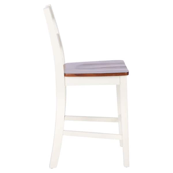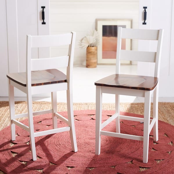 Yuri 39 in. White/Brown Wood High Back Bar Stool (Set of 2)