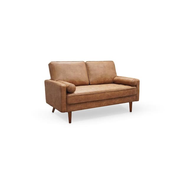 Earle 57.9 in. Brown Faux Leather 2-Seater Loveseat
