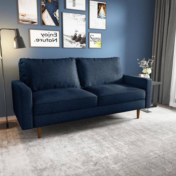 Poland 70 in. Square Arms Polyester Contemporary Rectangle Sofa in Dark Blue