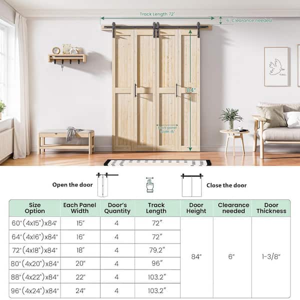 Assembled 60 in. x 84 in. Solid Core Unfinished Pine Wood Bi-Fold Door with Hardware Kit