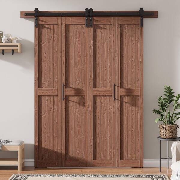 Assembled 72 in. x 84 in. Solid Core Dark Walnut Pine Wood Bi-Fold Door With Hardware Kit