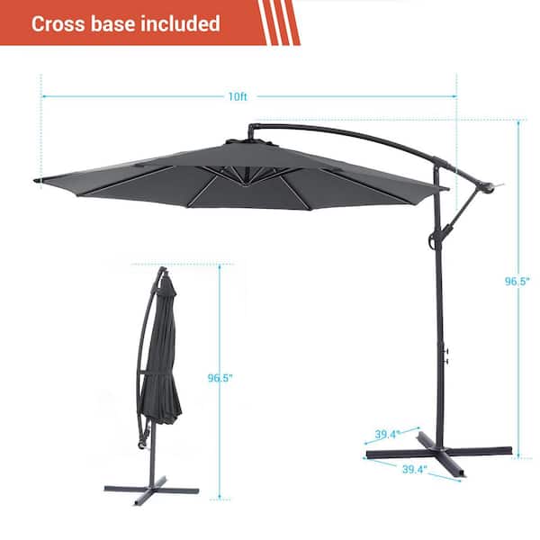 10 ft. Cantilever Patio Umbrella With Easy Adjustment, Solution-Dyed Fabric, 8 Ribs for Backyard, Poolside in Anthracite