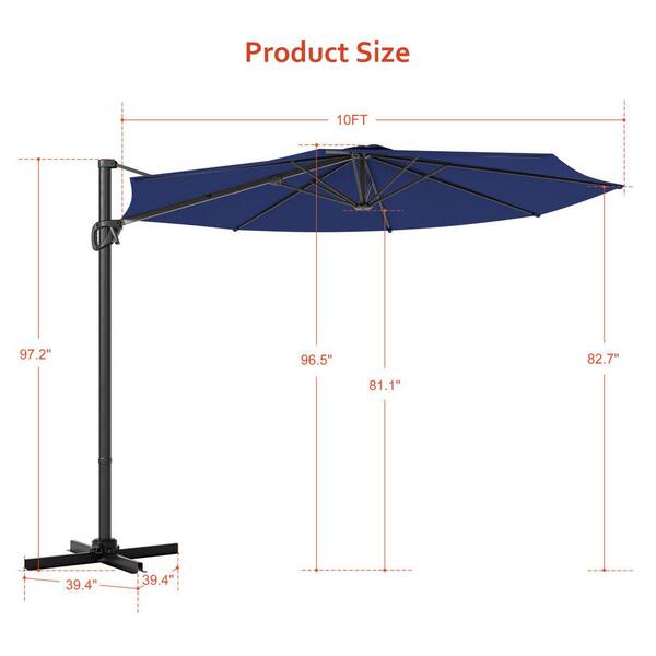 10 ft. Cantilever Umbrella with Solution-Dyed Fabric, Luxury Shade with 360° Rotation in Navy Blue
