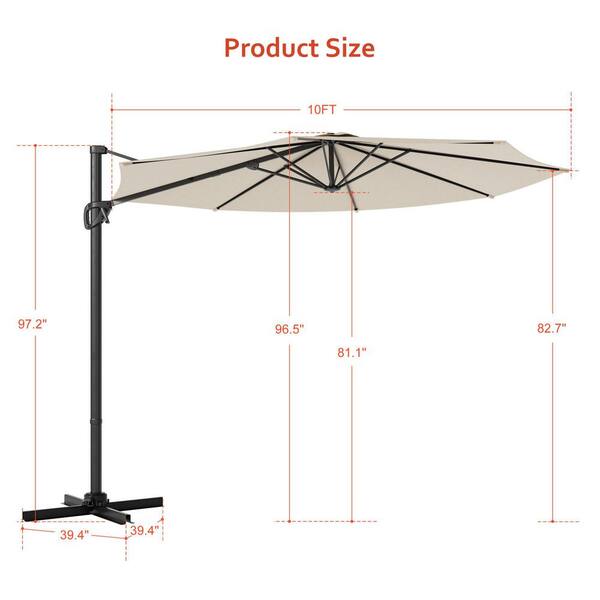 10FT Cantilever Umbrella with Solution-Dyed Fabric, Luxury Shade with 360° Rotation in Beige