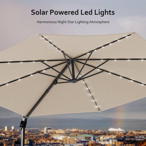 10FT LED Cantilever Umbrella with Lights, Solution-Dyed Fabric, Luxury Shade with 360° Rotation in Beige