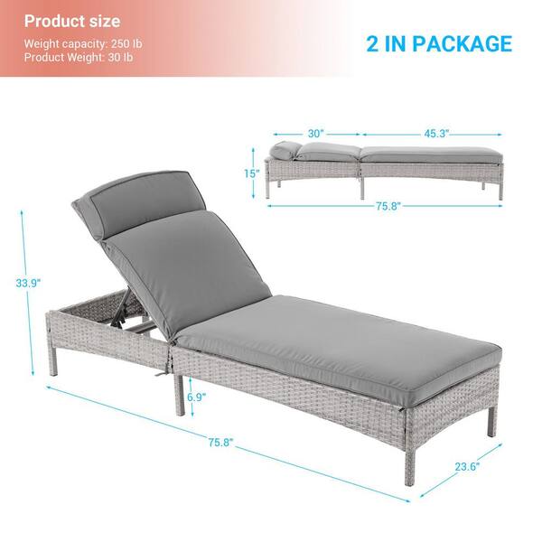 2-Piece Patio Lounge Sofa Grey PE Wicker Adjustable Angles Suitable for Backyard, Patio and Porch with Gray Cushion