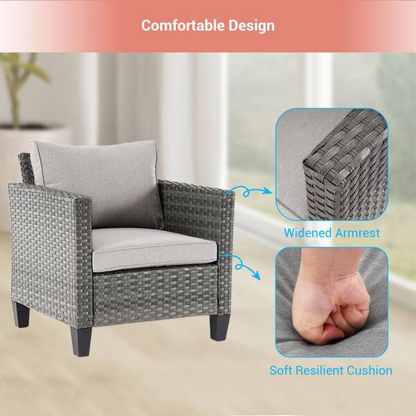 5-Set Outdoor Gray PE Wicker Conversation Couch Set Extra Ottomans Design for Lawn, Patio and Porch, Light Gray