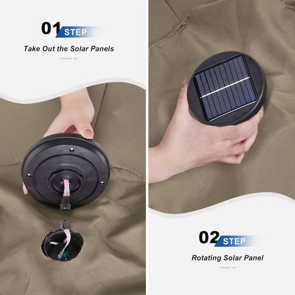 9 ft. LED Round Patio Umbrella with Large Canopy Outdoor Table Umbrella for Garden, deck and pool in Taupe