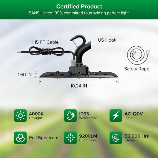 120W Black Full Spectrum 4000K Daylight LED Plant Grow Light 9,200LM High PPFD LED Plant Grow Light