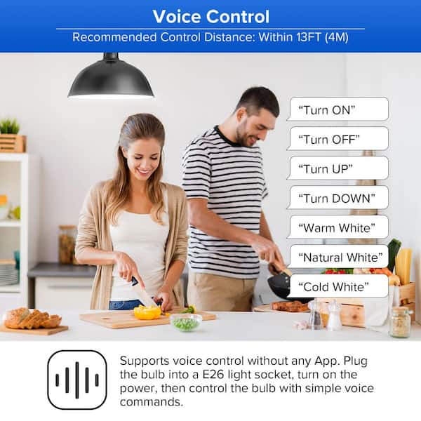 150-Watt Equivalent 2700K 4000K 6500K Dimmable A21 2200LM Voice Remote Control LED Light Bulb (1-Pack)