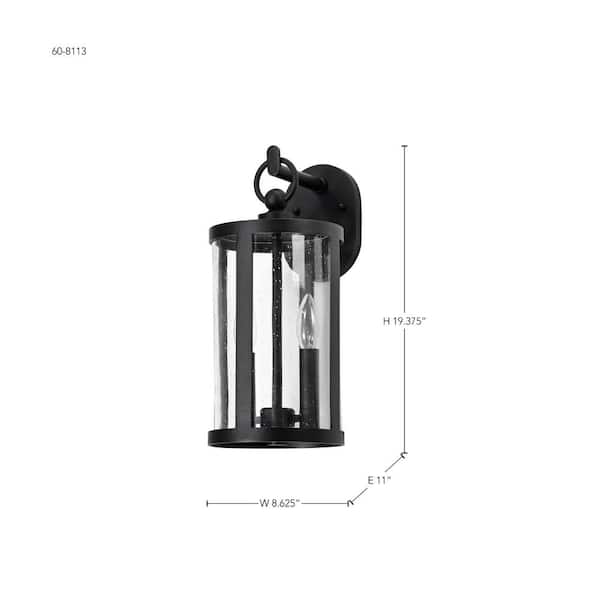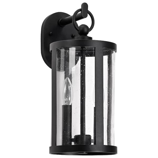 Broadstone 2-Light Matte Black Hardwired Outdoor Wall Lantern Sconce with Clear Seeded Glass Shade