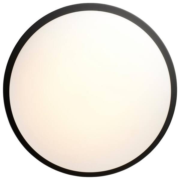 Button 17 in. Matte Black Contemporary Flush Mount with Frosted Glass Shade and Integrated LED Included