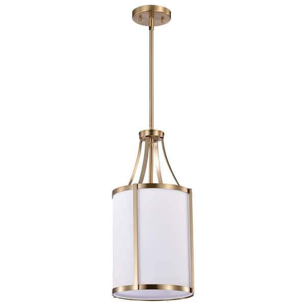 Easton 100-Watt 1-Light Burnished Brass Shaded Pendant Light with White Linen Shade, No Bulbs Included