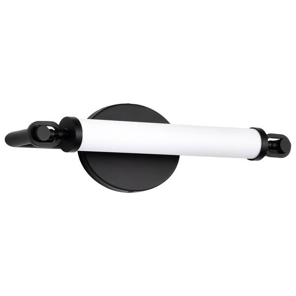 Edgeworth 15.75 in. 1-Light Matte Black Integrated LED Vanity Light with White Acrylic Shade