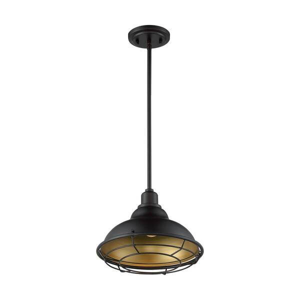 Newbridge 60-Watt 1-Light Dark Bronze and Gold Bell Pendant Light with Metal Shade and No Bulbs Included