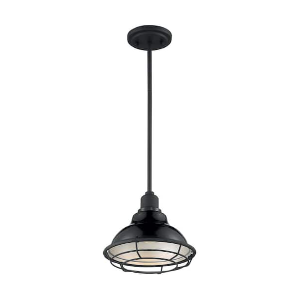 Newbridge 60-Watt 1-Light Gloss Black and Silver Bell Pendant Light with Metal Shade and No Bulbs Included