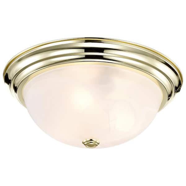 Nuvo 15 in. 3-Light Polished Brass Transitional Flush Mount with Alabaster Glass Shade and No Bulbs Included