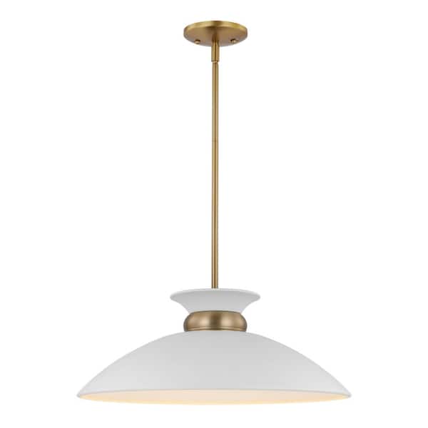 Perkins 100-Watt 1-Light Matte White/Burnished Brass Shaded Pendant Light with Black Metal Shade, No Bulbs Included