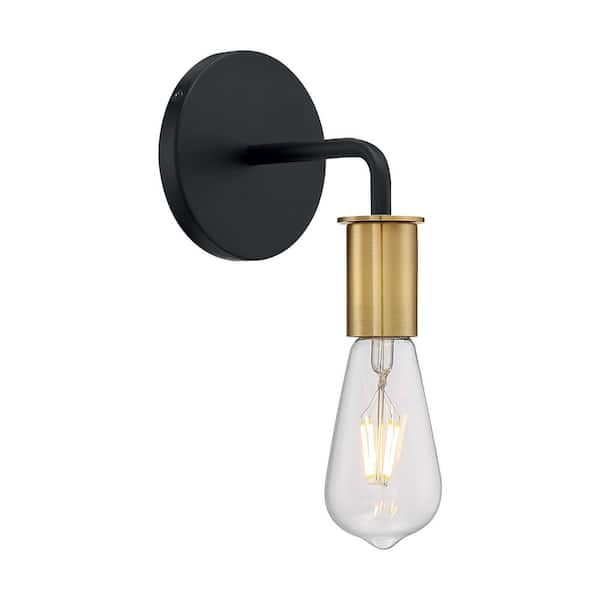 Ryder 4.75 in. 1-Light Black/Brushed Brass Wall Sconce with No Shade