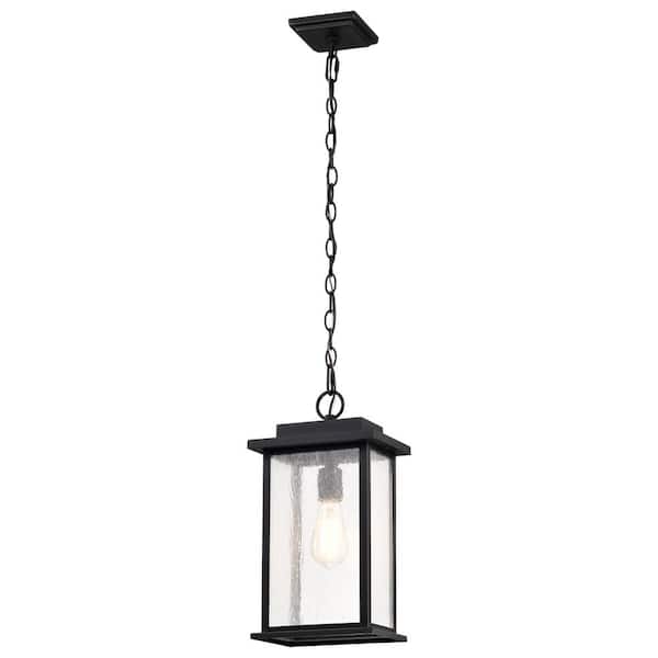 Sullivan 16.63 in. 1-Light Matte Black Dimmable Outdoor Pendant Light with Clear Seedy Glass and No Bulbs Included