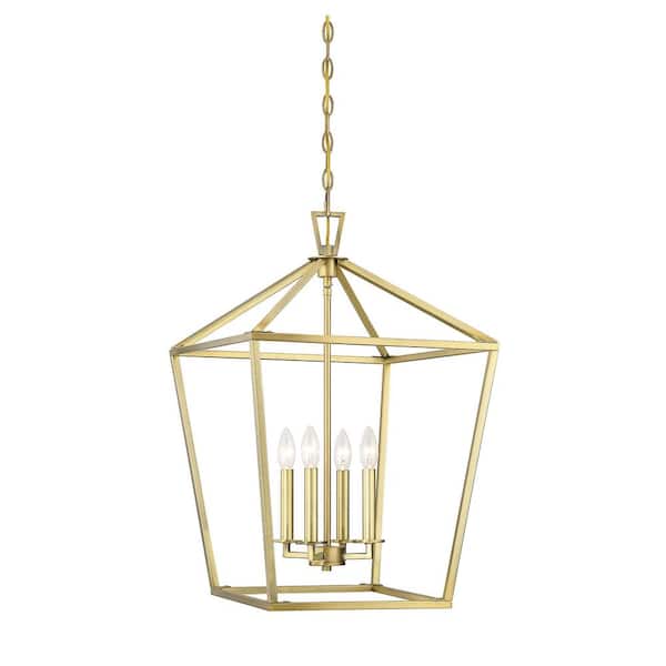 Townsend 17 in. W x 26 in. H 4-Light Warm Brass Candlestick Metal Lantern Pendant Light
