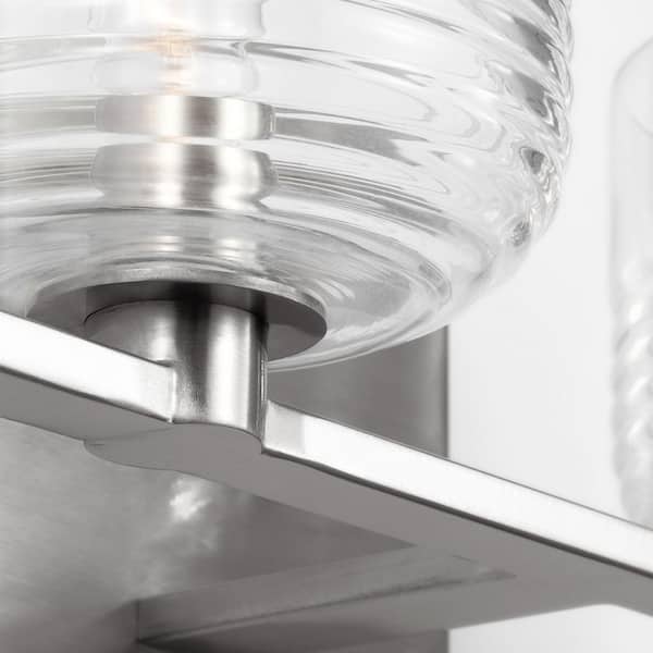 Lochdale Extra Large 33.625 in. 4-Light Brushed Nickel Vanity Light with Clear Ribbed Glass Shades