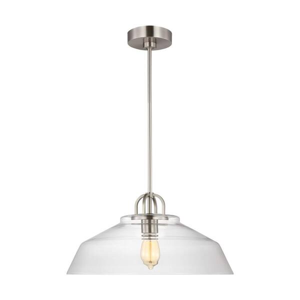 Payton 75-Watt 1-Light Brushed Steel Medium Pendant Light with Clear Glass Shade and No Bulbs Included