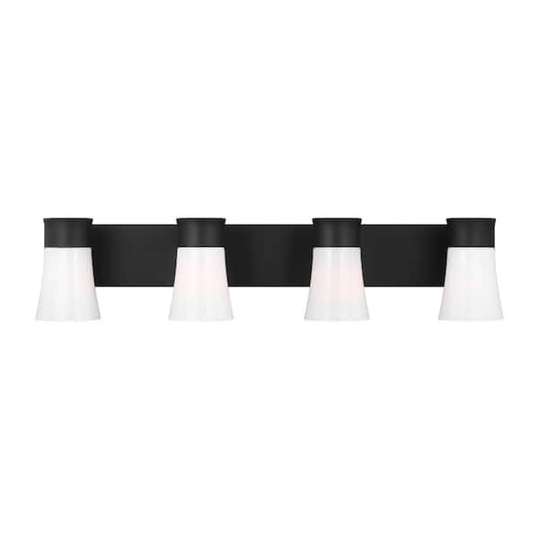 Roy 32.25 in. 4-Light Midnight Black Extra Large Vanity Light with Milk Glass Shades