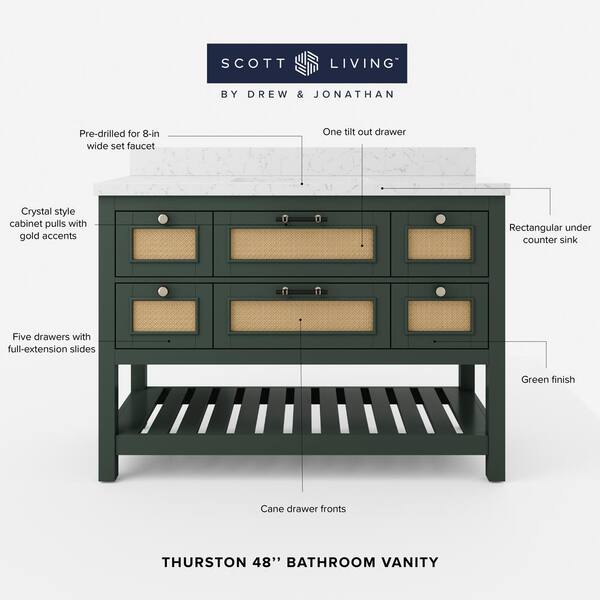 Thurston 48 in. W x 20 in. D x 34.5 in. H Bathroom Vanity in Green w/ Quartz Vanity Top in White w/ White Basin