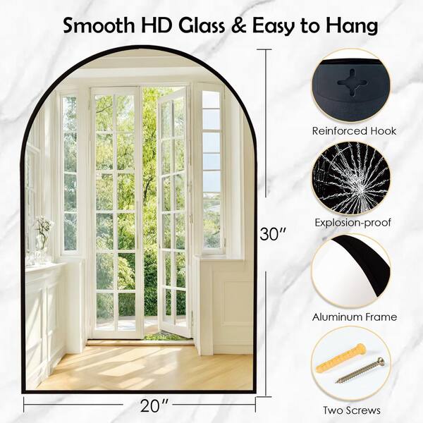 SDKOA 20 in. W x 30 in. H Arched Framed Wall Bathroom Vanity Mirror in Black for Bathroom, Living Room