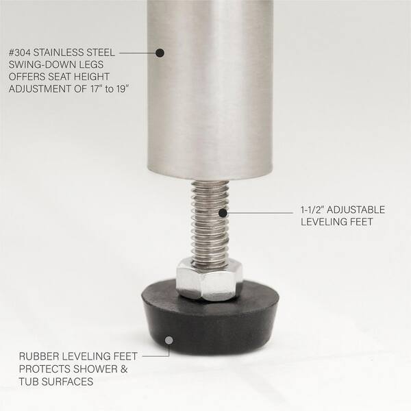 18 in. x 15 in. ADA Bariatric Folding Wall Mount Bathroom Shower Seat Bench with Legs Black Slatted Phenolic Seat