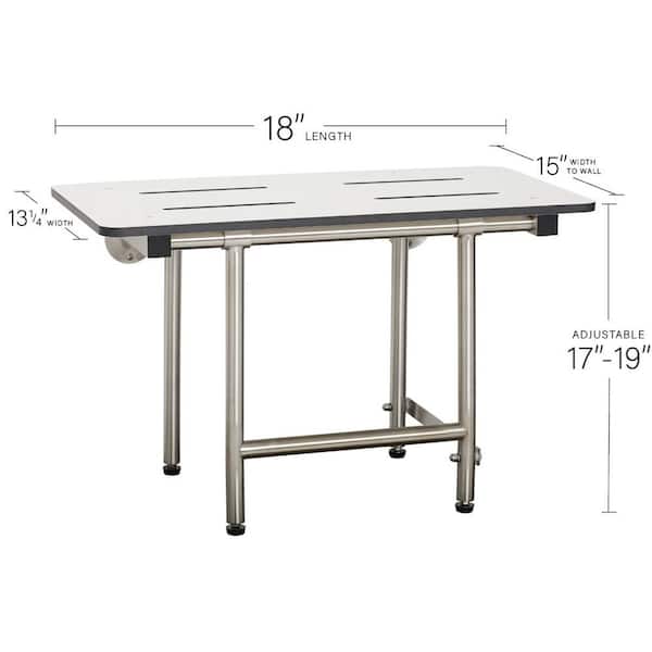 18 in. x 15 in. Folding Wall Mount Bench Shower Seat with Legs in White, ADA Compliant