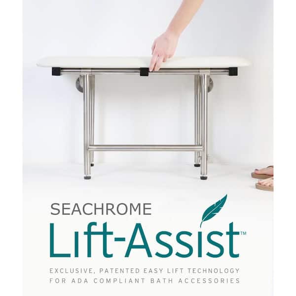 24 in. x 15 in. Padded Cushion Folding Wall Mount ADA Compliant Bench Shower Seat with Legs in White