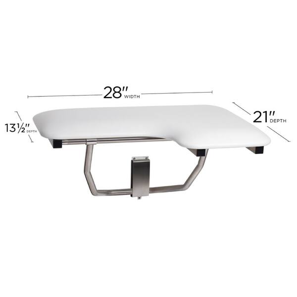 28 in White Padded Cushion Wall Mount Folding Left-Handed Transfer Bench Shower Seat, ADA Compliant