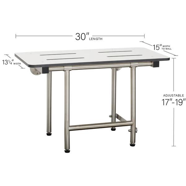 30 in. x 15 in. Folding Wall Mount Bench Shower Seat with Legs in White, ADA Compliant