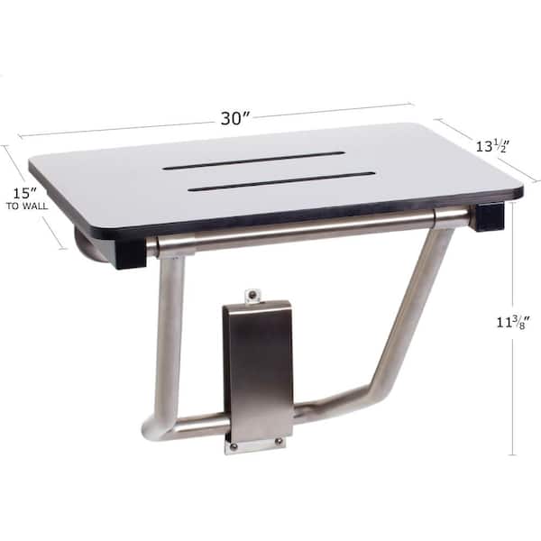 30 in. x 15 in. Folding Wall Mount Shower Seat Bench in White, ADA Compliant