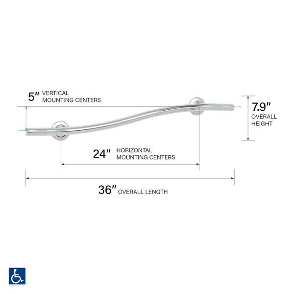 36 in. Lifestyle and Wellness Designer Wave Wall Mount Bathroom Shower Grab Bar, 1-3/4 in. Dia in Satin