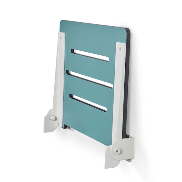 Seachrome 18 in. Silhouette SlimLine Folding Wall Mount Shower Bench Seat, Sea Collection, Phenolic, Teal, White