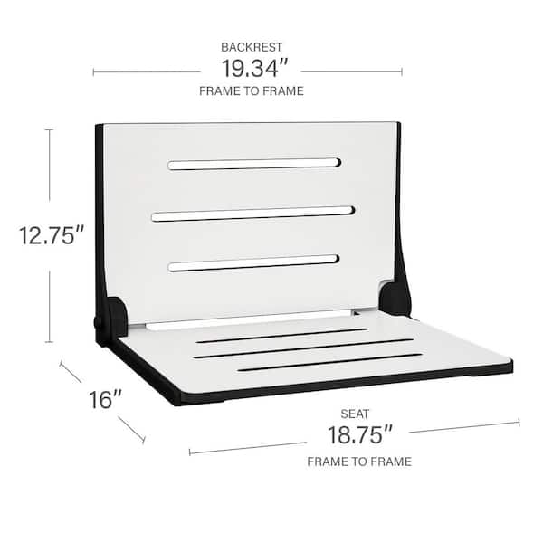 Silhouette Folding Wall Mount Shower Bench Seat in White Seat with Matte Black Frame