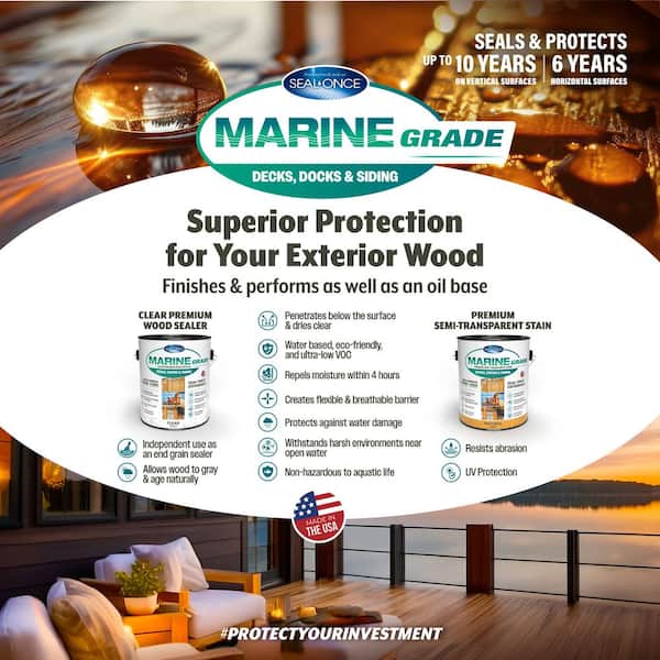 MARINE GRADE 5 Gallon Light Brown Premium Semi-Transparent Penetrating Water-Based Exterior Wood Stain
