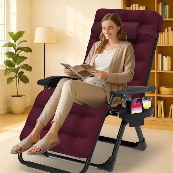 26 in. W Metal Zero Gravity Chair Outdoor/Indoor Patio Camping Folding Reclining Lounge Chair with Claret Cushion