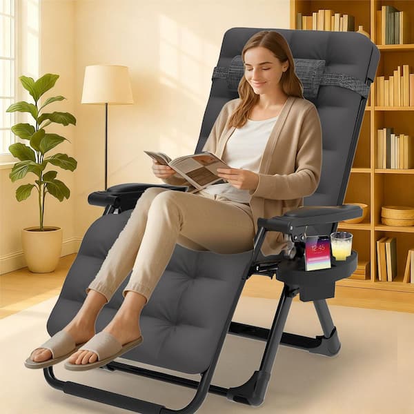 26 in. W Metal Zero Gravity Chair Outdoor/Indoor Patio Camping Folding Reclining Lounge Chair with Fossil Gray Cushion